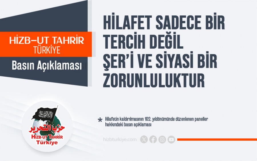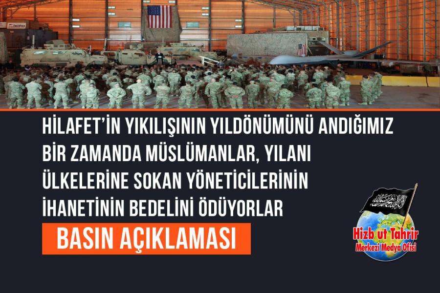 Haber: Yarın, yani H. 28 Receb 1447, Hilafet Devleti’nin yıkılışının 105. yıldönümüne denk gelmektedir. Yorum: Tarihin karanlık günlerinden birinde, yani H. 28 Receb 1342, M. 3 Mart 1924’te, Hilafet yıkılmış, bayrağı yere indirilmiş ve İngiltere liderliğindeki kafir ülkeler, onu yıkmak için komplo kurup onun enkazının üzerine laik bir devlet kurmuşlardır;böylece ümmetin tarihinde tehlikeli bir dönüm